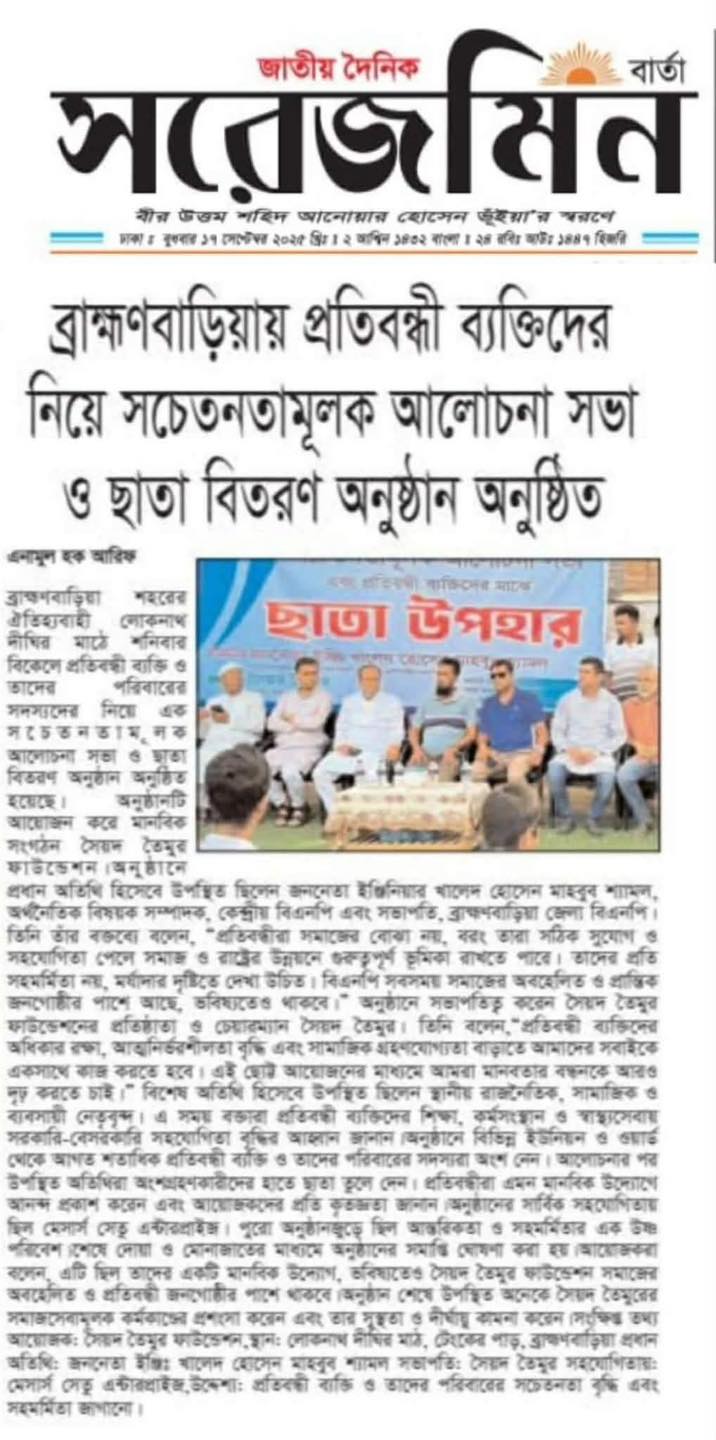 সৈয়দ তৈমুর ফাউন্ডেশনের উদ্যোগে ব্রাহ্মণবাড়িয়া পৌরসভার পরিস্কার পরিচ্ছন্ন কর্মীদের মাঝে শীত বস্ত্র বিতরণ কালে উপস্থিত ছিলেন পৌর প্রশাসক শফিকুর ইসলাম…