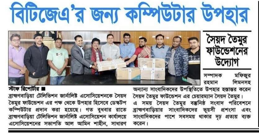 সৈয়দ তৈমুর ফাউন্ডেশন এর পক্ষ থেকে ব্রাহ্মণবাড়িয়া টেলিভিশন জার্নালিষ্ট এসোসিয়েশনকে কম্পিউটার উপহার