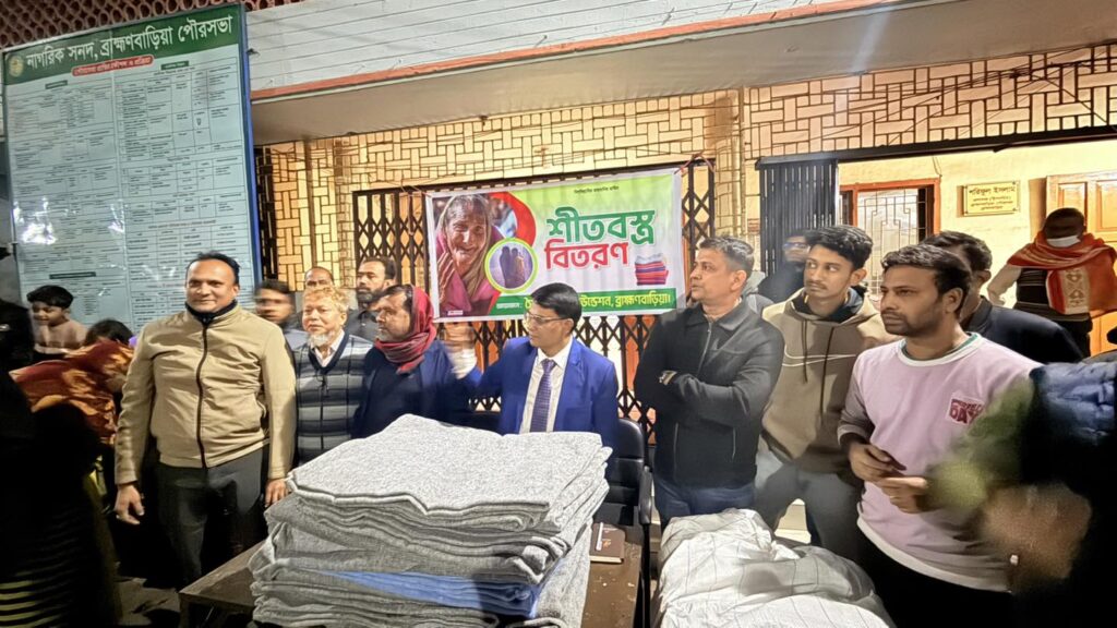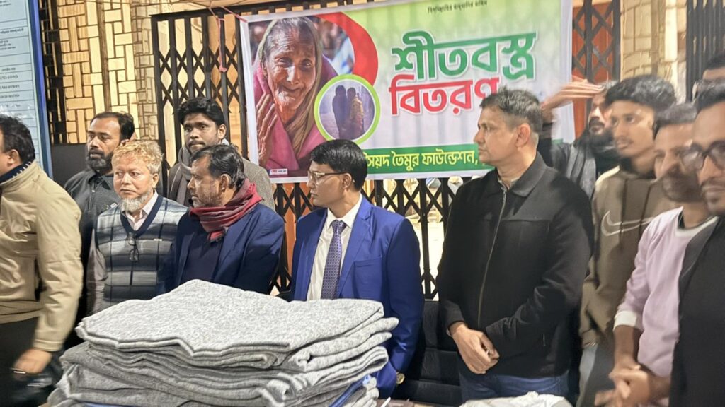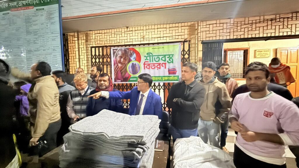 সৈয়দ তৈমুর ফাউন্ডেশনের উদ্যোগে ব্রাহ্মণবাড়িয়া পৌরসভার পরিস্কার পরিচ্ছন্ন কর্মীদের মাঝে শীত বস্ত্র বিতরণ কালে উপস্থিত ছিলেন পৌর প্রশাসক শফিকুর ইসলাম ও সৈয়দ তৈমুর ফাউন্ডেশনের সভাপতি সৈয়দ তৈমুর।
